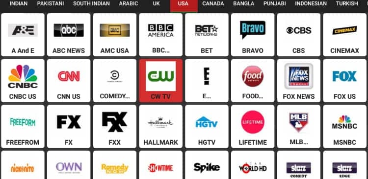 Live TV contains: Sports, Science, Kids, Indian, Pakistan, South Indian, Arabic, UK, USA, Canada, Australian, Italian, Bangla, Punjabi, Indonesian, Turkish, Portugal, Iranian, Sri Lankan, French, German and Religious TV meaning in total there are over 200 channels that works faster.